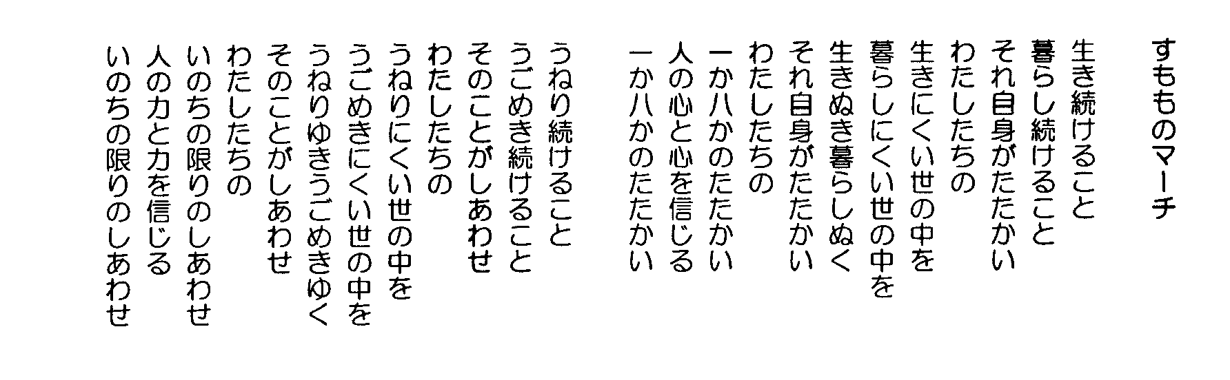 この曲は、徳見の友人・森あかりさんから、「リハ裁判そして障労裁判」をめぐる集会(2001年3月3日)にあたって贈られた曲です。